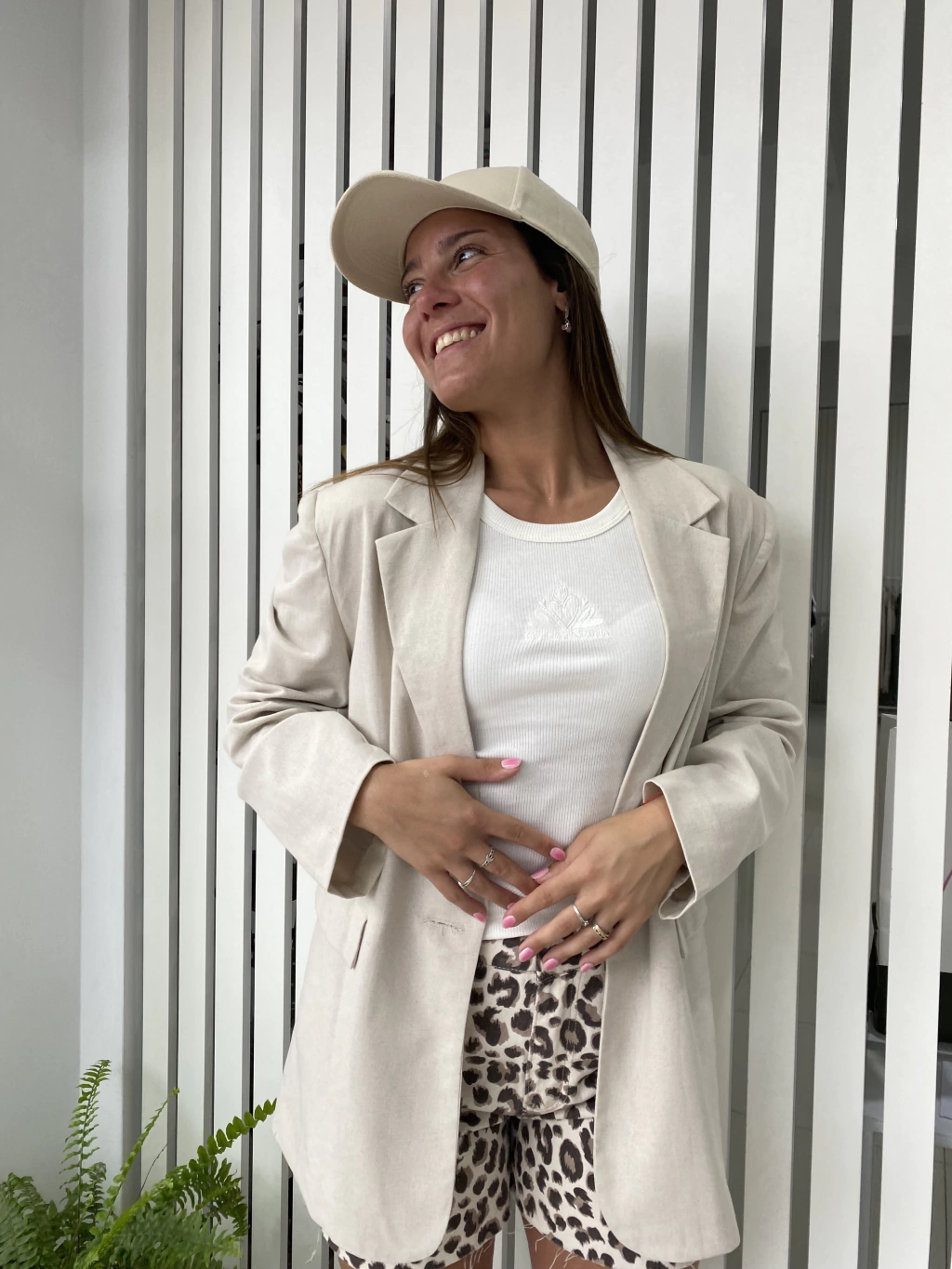 Presentamos el Blazer Casia By Cataleia, una prenda que redefine el estilo con su confección en lino de alta calidad. Este blazer cuenta con una solapa tipo smocking que añade un toque sofisticado a cualquier look. El forro interno garantiza máxima comodidad, mientras que el cierre delantero con un botón símil carey grabado con la inscripción de la marca añade un detalle exclusivo. Los bolsillos con solapa y el detalle de avío de la marca completan esta prenda, haciendo de ella una opción perfecta para cualquier ocasión. Disponible en variados talles, el Blazer Casia es ideal para completar tu guardarropa con un toque de distinción.