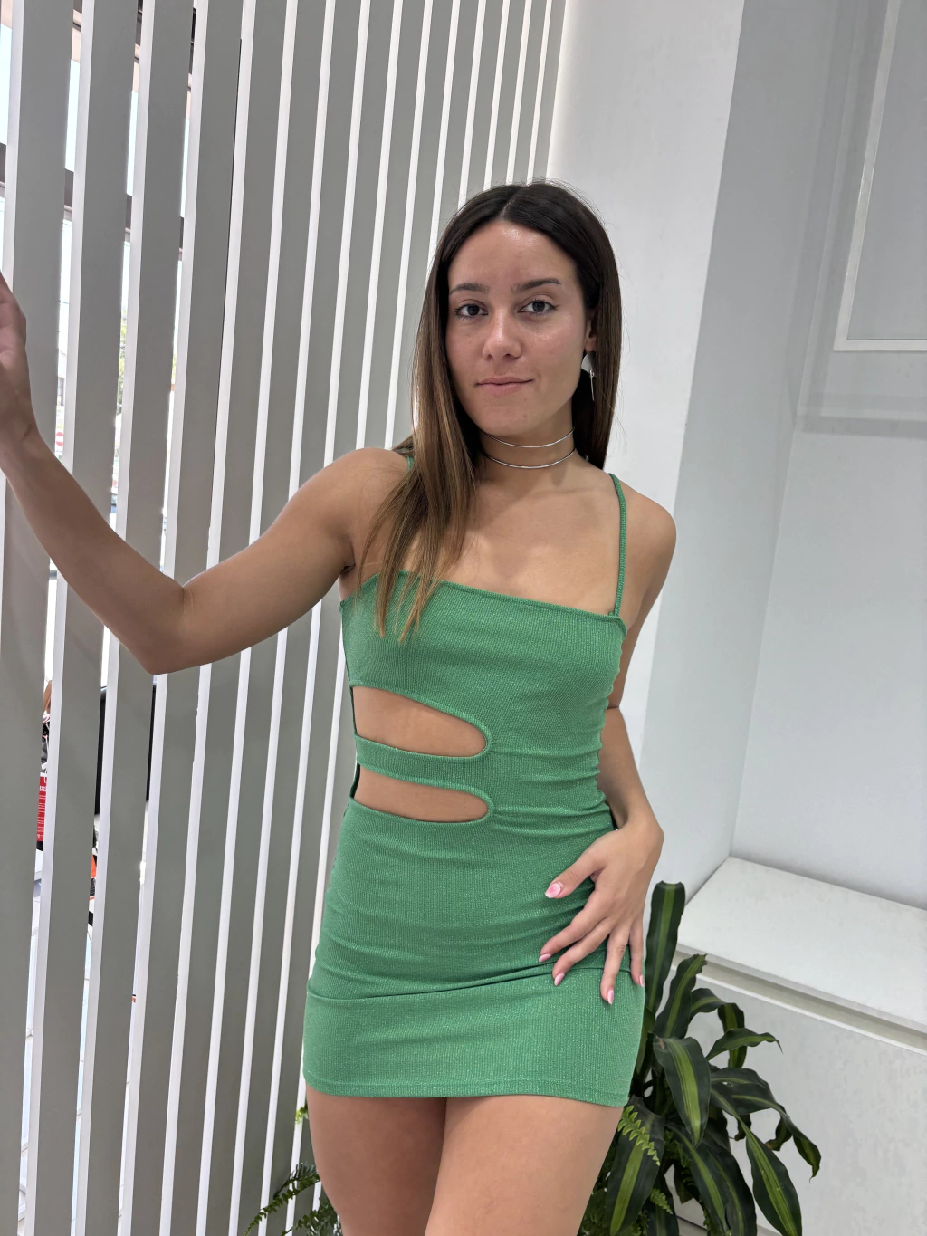 Presentamos el Vestido Gabe, el compañero ideal para tus salidas nocturnas con amigas. Este vestido corto de lurex es perfecto para lucir fresca y divertida. Con aberturas en el lateral, Su tejido brillante te hará brillar en cualquier fiesta, mientras que su diseño cómodo te permitirá moverte con libertad.